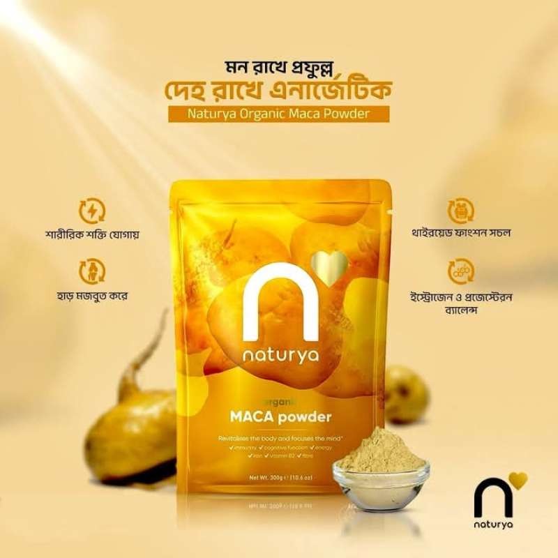 মাকা পাউডার একটি সুপারফুড। মাকা একটি ঔষধি গাছ যা পেরুভিয়ান জিংস্যাং নামেও পরিচিত মূলত মধ্য পেরু অঞ্চলে খুব রুক্ষ কঠিন প্রাকৃতিক পরিবেশে উচু পাহাড়ি মাটিতে এটি জন্মায় ও বেড়ে উঠে।এই গাছের শেকড় প্রাকৃতিকভাবে শুকিয়ে গুড়ো করে খাওয়ার উপযোগী করা হয়। শত শত বছর ধরে এই মাকা পাউডার নানানভাবে ঔষধ হিসেবে ব্যবহৃত হয়ে আসছে। (300gm) Weight