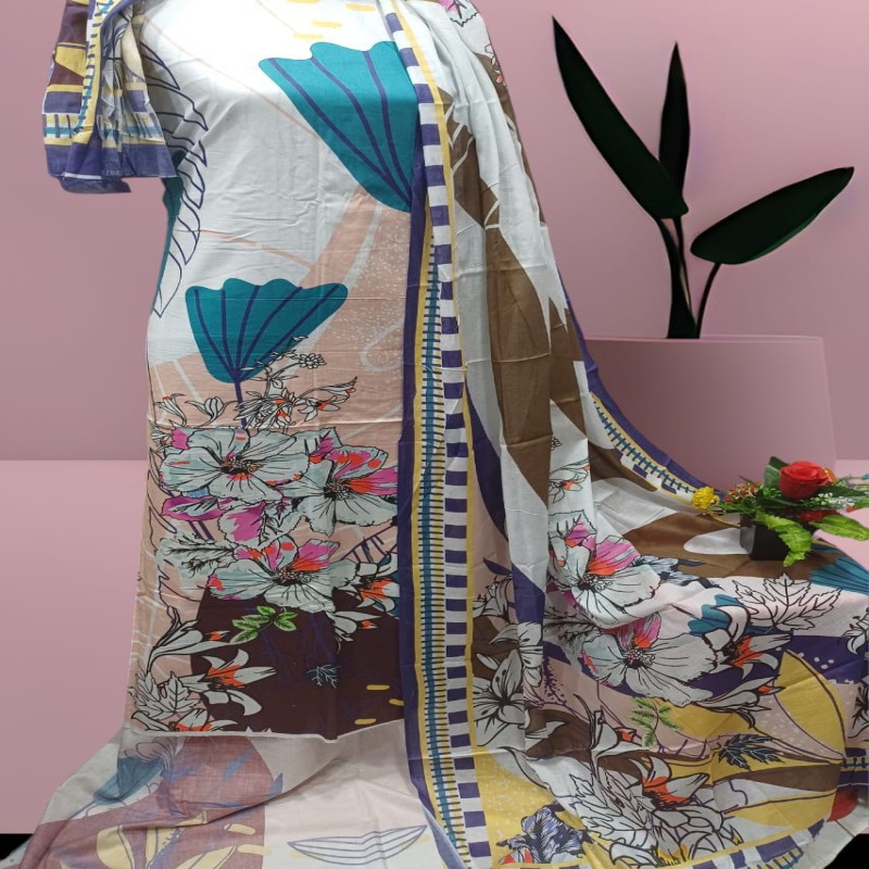 🌸 Digital Print Cotton Three Piece – জমজম সুইস কটন